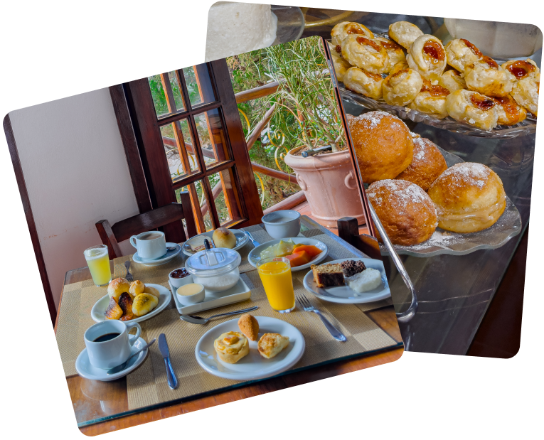 Pães, bolos caseiros e sucos naturais para abrir o dia com afeto. Um café da manhã de encher os olhos — e o coração — antes das trilhas e descobertas na Chapada!